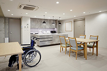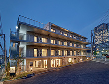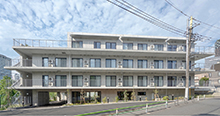 Aoyama Square is a welfare facility located in a quiet residential area of Minami-Aoyama, Minato Ward, comprising a special nursing home and a group home. As a welfare facility situated in the heart of the city, it adopts a compact circulation plan within a limited site to secure spacious living areas.