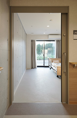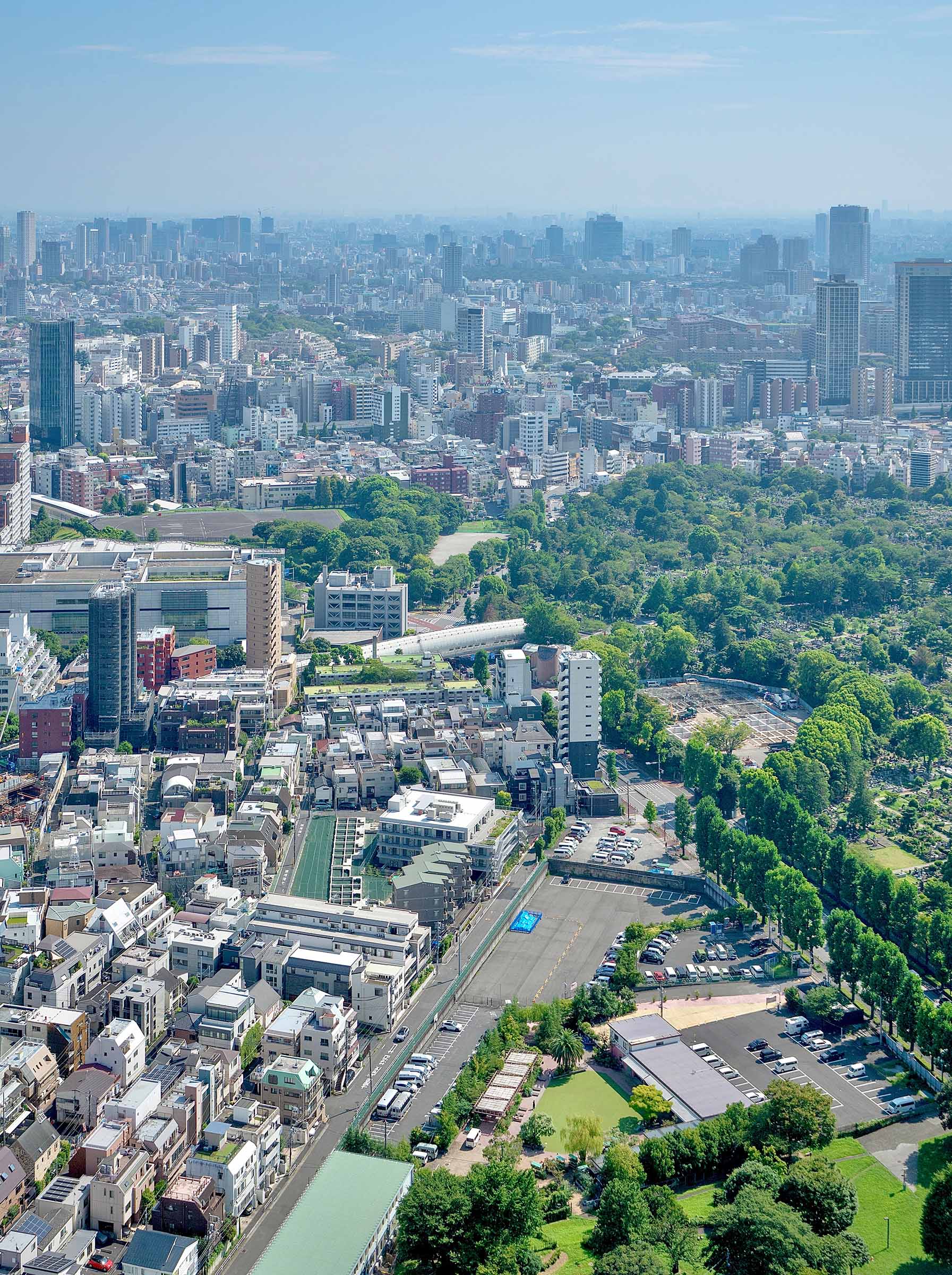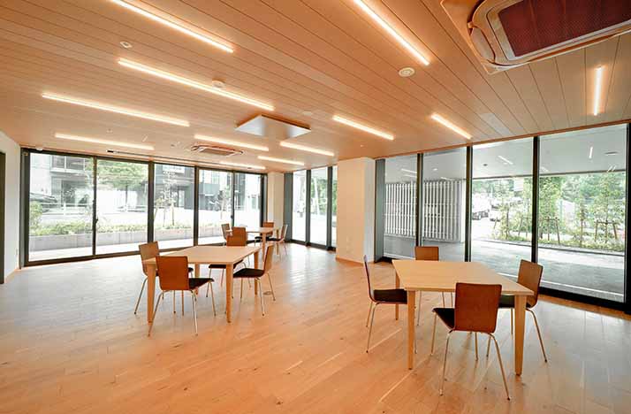 2階・3階は青山霊園の緑を借景として取り込み、4階には開放感のある屋上庭園を設け、入居者に快適で心地よい生活空間を提供している。