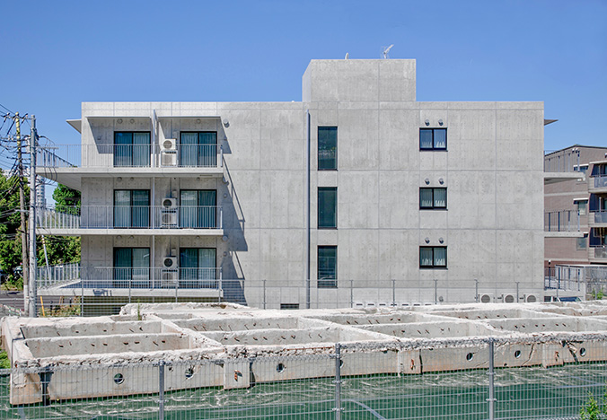 建物外観は全面打放しコンクリート仕上げで、バルコニーの水平ラインを強調した意匠と、透け感のある手摺デザインにより、周囲への圧迫感を軽減し、地域環境との調和を図っている。近隣には弊社設計の国立新美術館があり、屋上庭園のフラクタル曲線が黒川イズムとして呼応している。