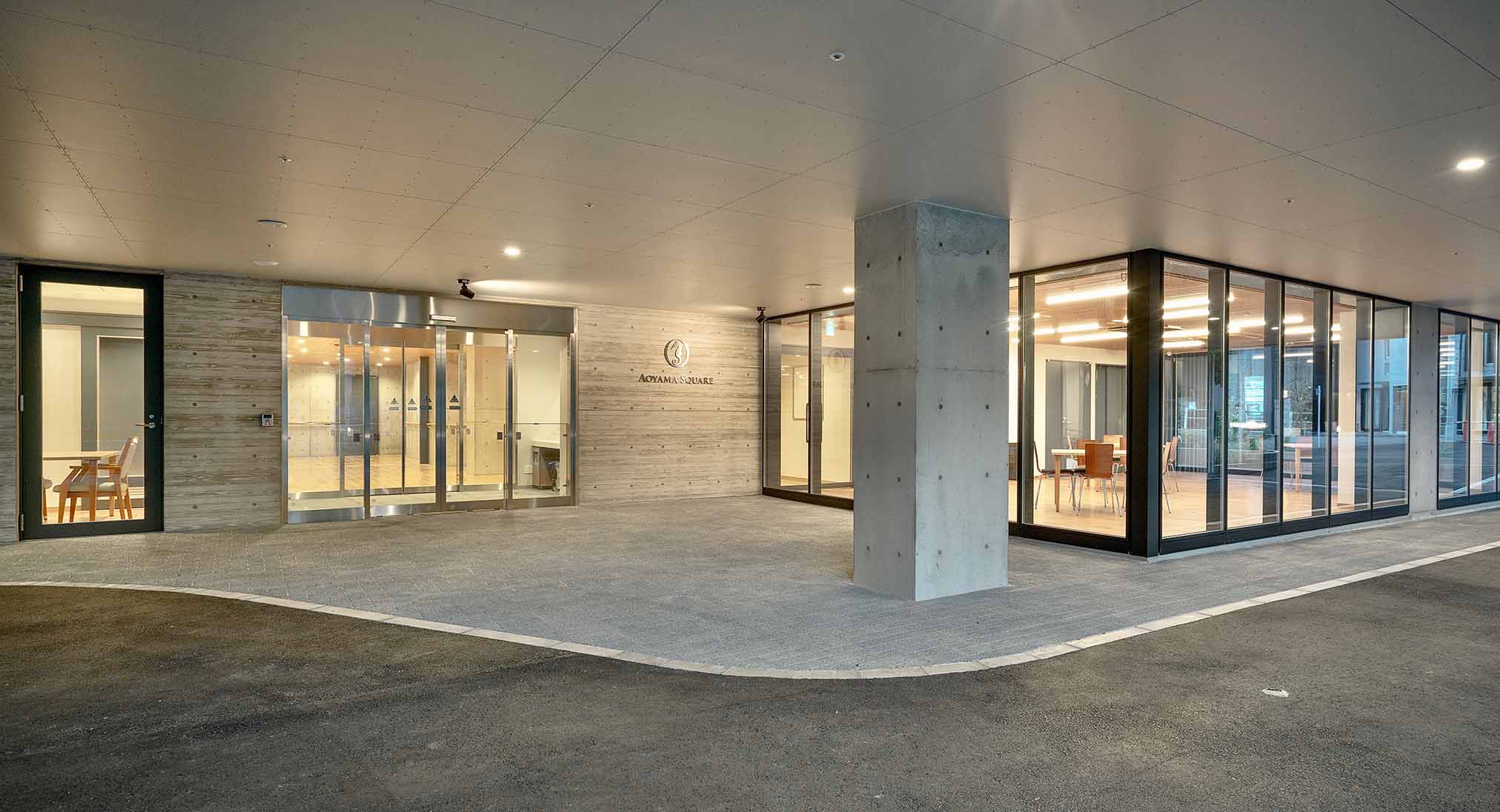 青山スクウェアーは、港区南青山の閑静な住宅街に位置する、特別養護老人ホームとグループホームを併設した福祉施設である。都会に立地する福祉施設として、限られた敷地の中でコンパクトな動線計画を採用し、広々としたリビングを確保する計画とした。